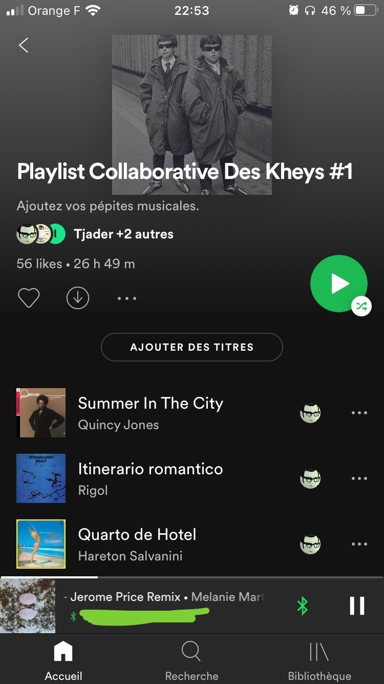 Y'a une fonctionnalité spotify qui permet de faire une session collective, je lance l'option avec un lien aux kheys qui veulent rejoindre en mp puis je mets la playlist en aléatoire et on la découvreOn fait ça tous les soirs