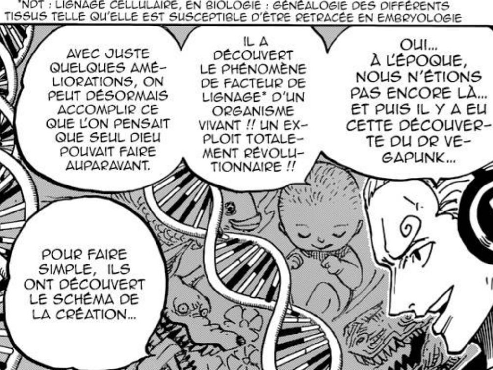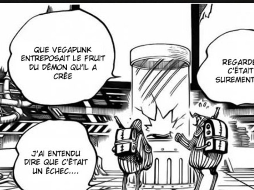On apprendra dans ce même chapitre, que Vegapunk aurait découvert le secret des fruits du démon.
