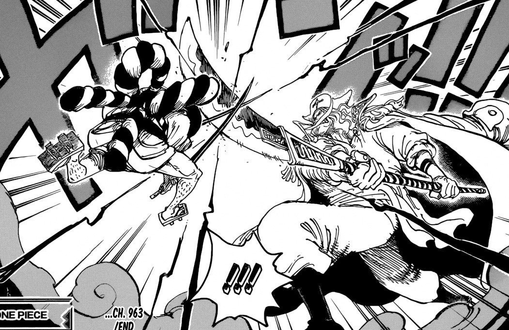 Donc pour moi, Kaido et BM maltraitent les mugi + SN du toit, chapitre 1005 Usopp meurt dans les bras de Luffy, puis chapitre 1006+ Hawkins, Drake, Jinbei, Brook, Sanji, Marco rejoignent le toit et détruisent Kaido avec un Luffy enragé de la mort de son nakama