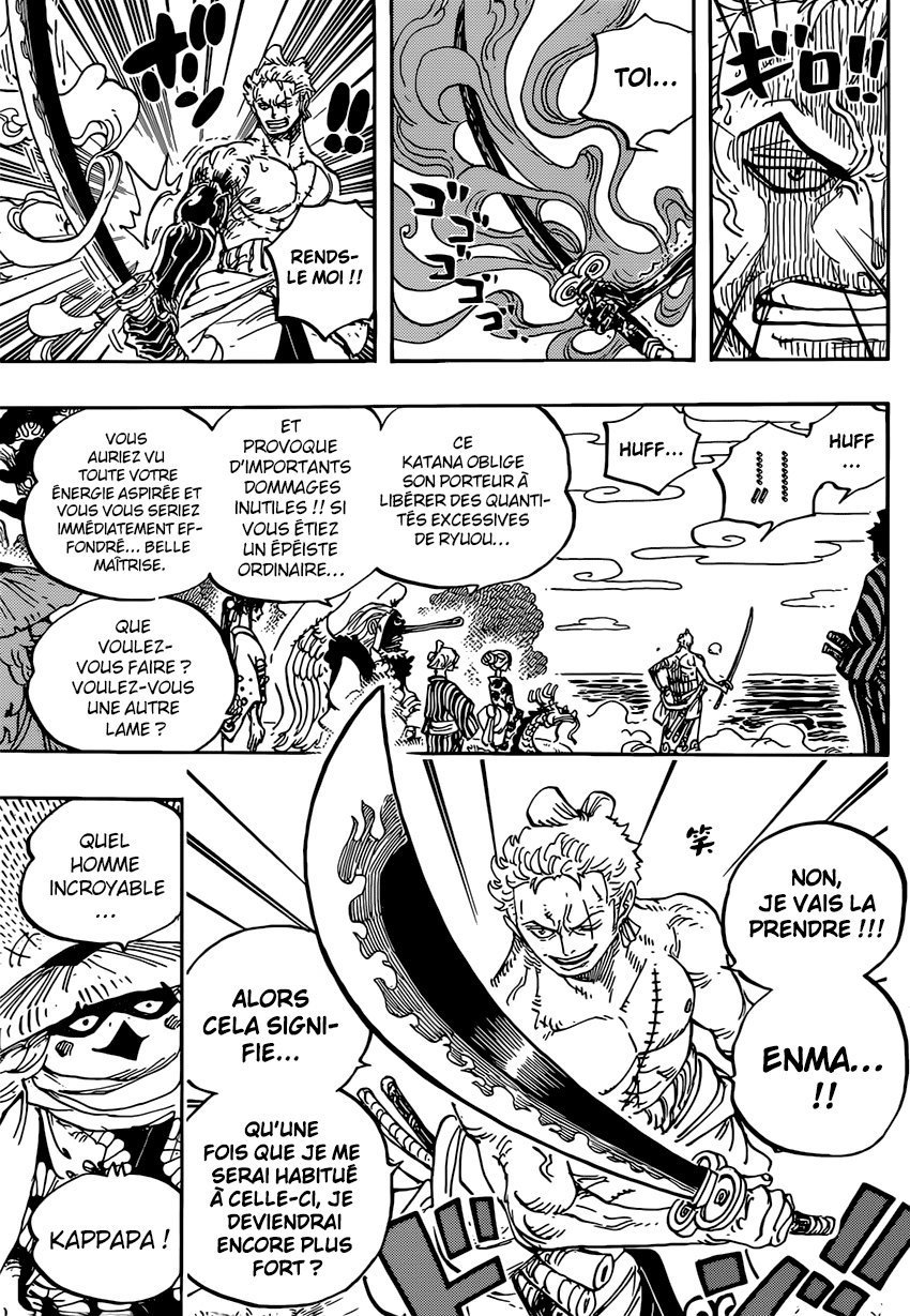 Luffy qui patate Kaido avec le Ryuo sans qu'on nous ait montré l'entrainementZoro qui maitrise enma, la lame qu'aucun autre homme n'a réussi en quelques heures en brassant de l'air