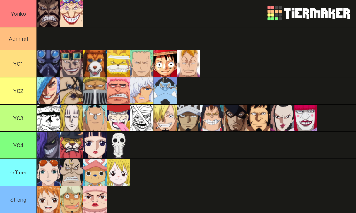 Law apoo et drake peuvent monter d'un cran je pense pareil pour jinbeiLaw est placé YC3, sachant que Doflamingo est YC2.
