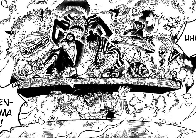 - Kinemon capable de trancher Kaido mais ne fais rien à Punk Hazard à part de faire défoncer par Law (qui on le rappel se fait défoncer par Doflamingo qui se chie dessus face à Kaido)