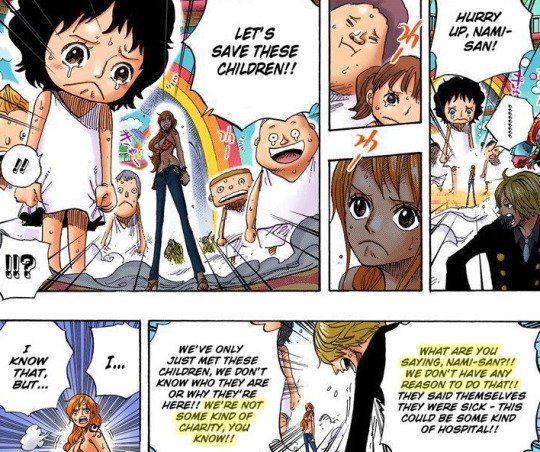 : Ce genre de scène est courante avec Sanji, toujours aimable avec les personnes sans defense ou vivant une injustice, enfant ou adulte, prenez le cas de Gin comme de Kinemon sur Punk Hasard cela revient au même.