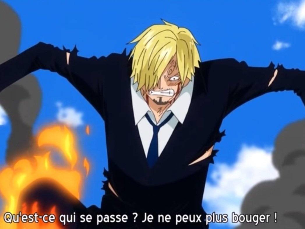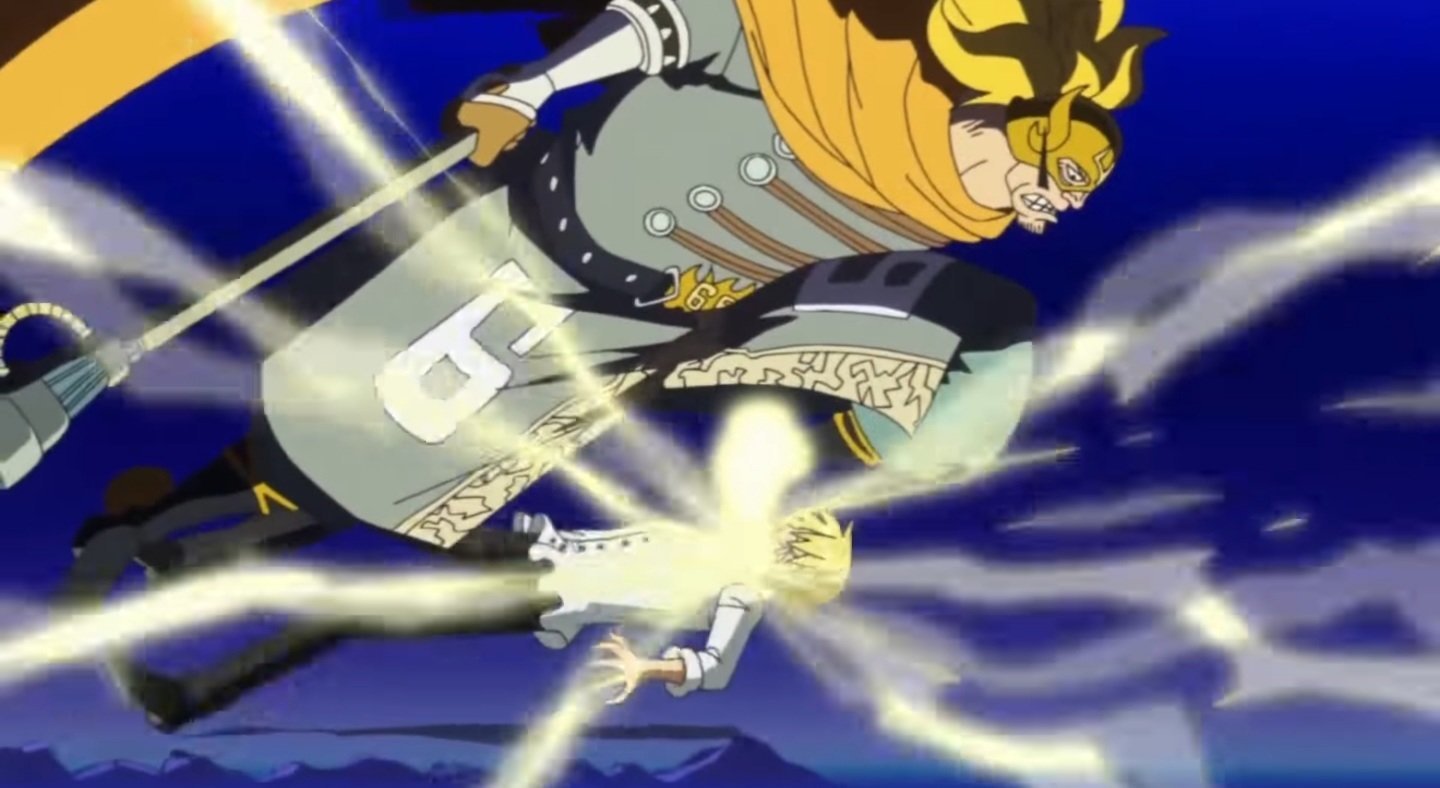 Ils utilisent plein de pouvoirs cheater.On a pas les détails du combat mais il finit par perdre face à une attaque combiné de tout les mugiwara.