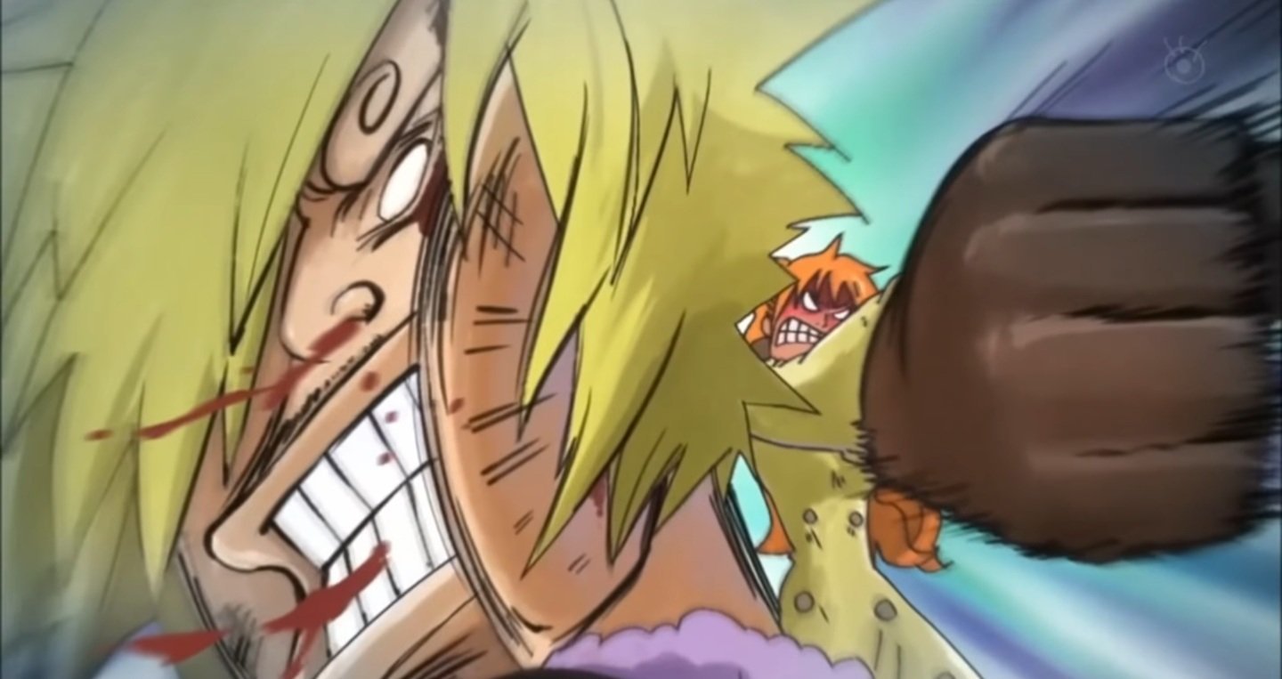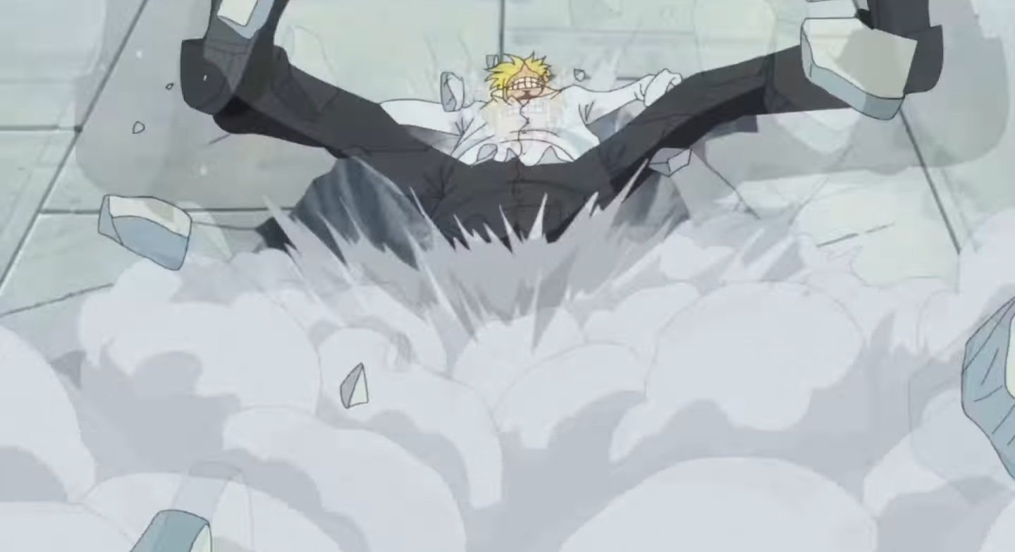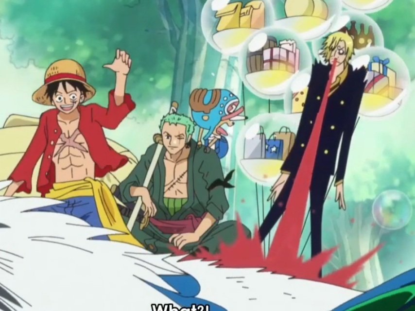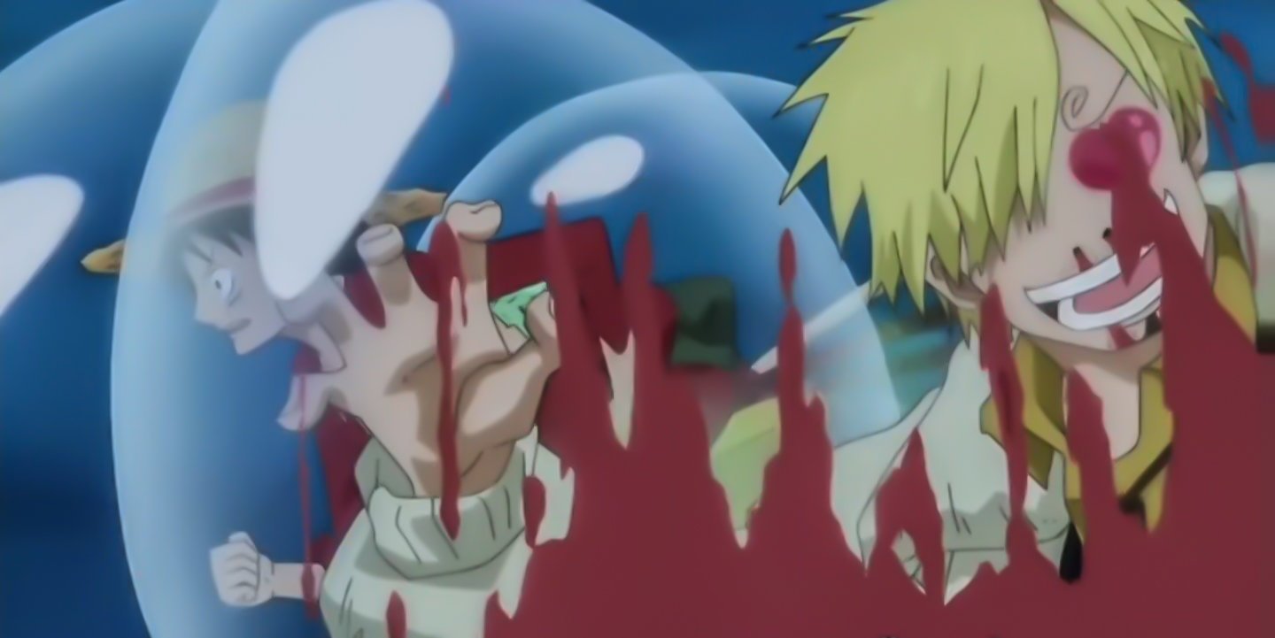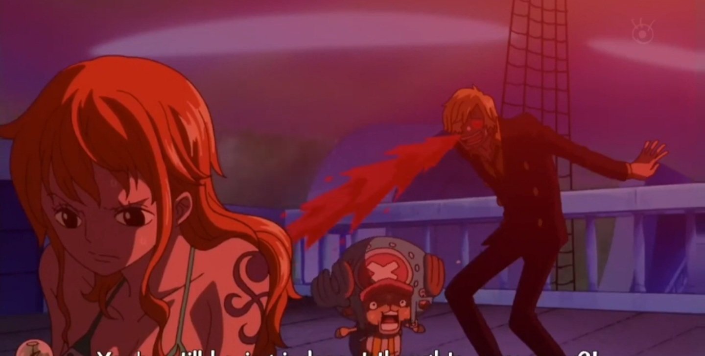Il fracasse tout le monde.Zoro et luffy sont mit ko.