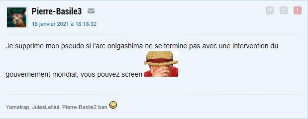 Je supprime mon pseudo si l'arc onigashima ne se termine pas avec une intervention du gouvernement mondial, vous pouvez screen![]()