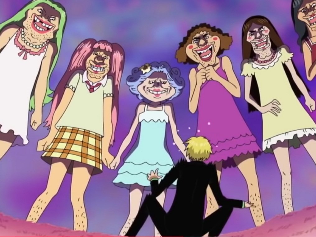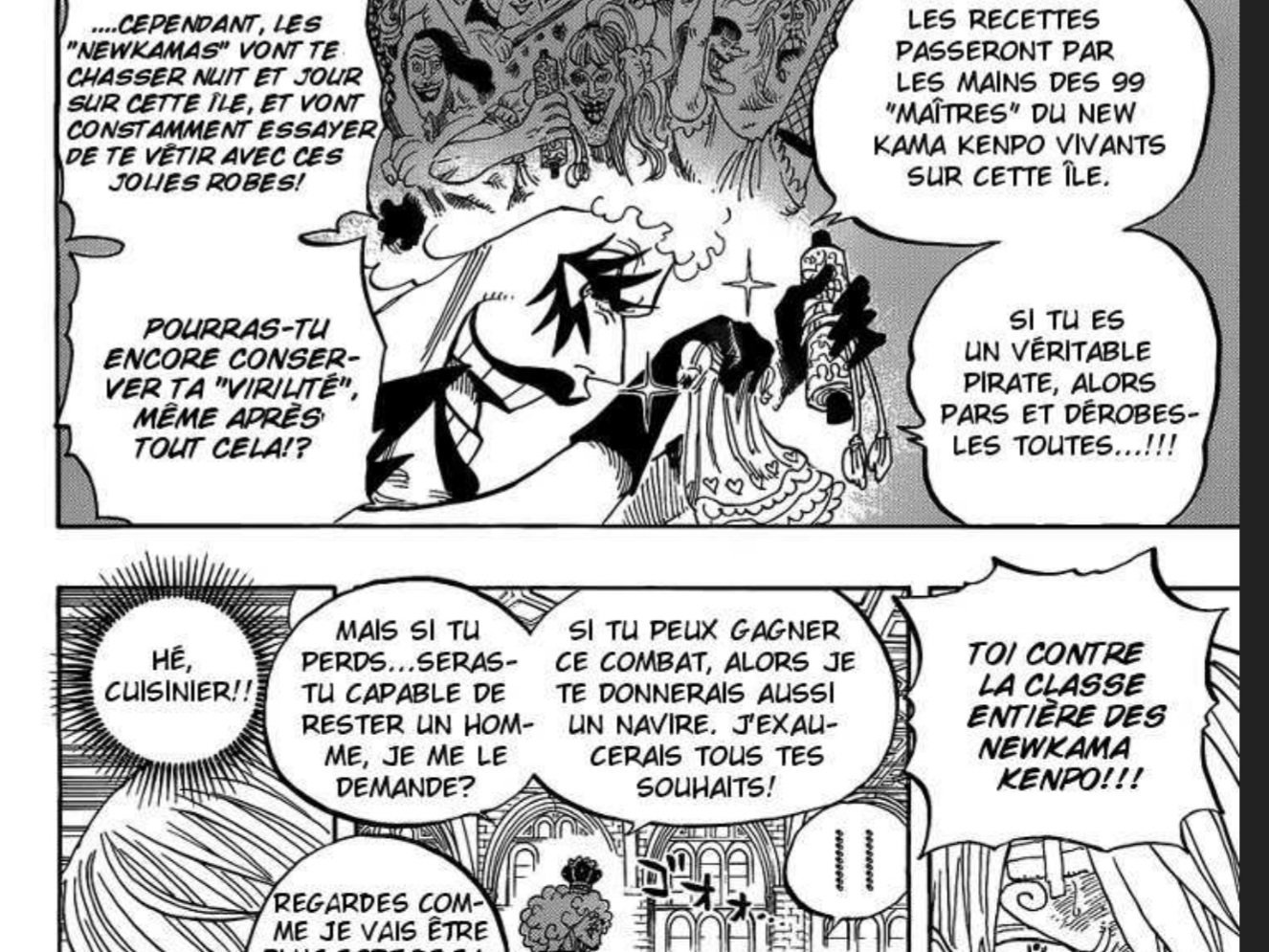 Et pour avoir les recettes, les Newkamas ont pourchassé Sanji jour et nuit pour le vêtir d'une robe :