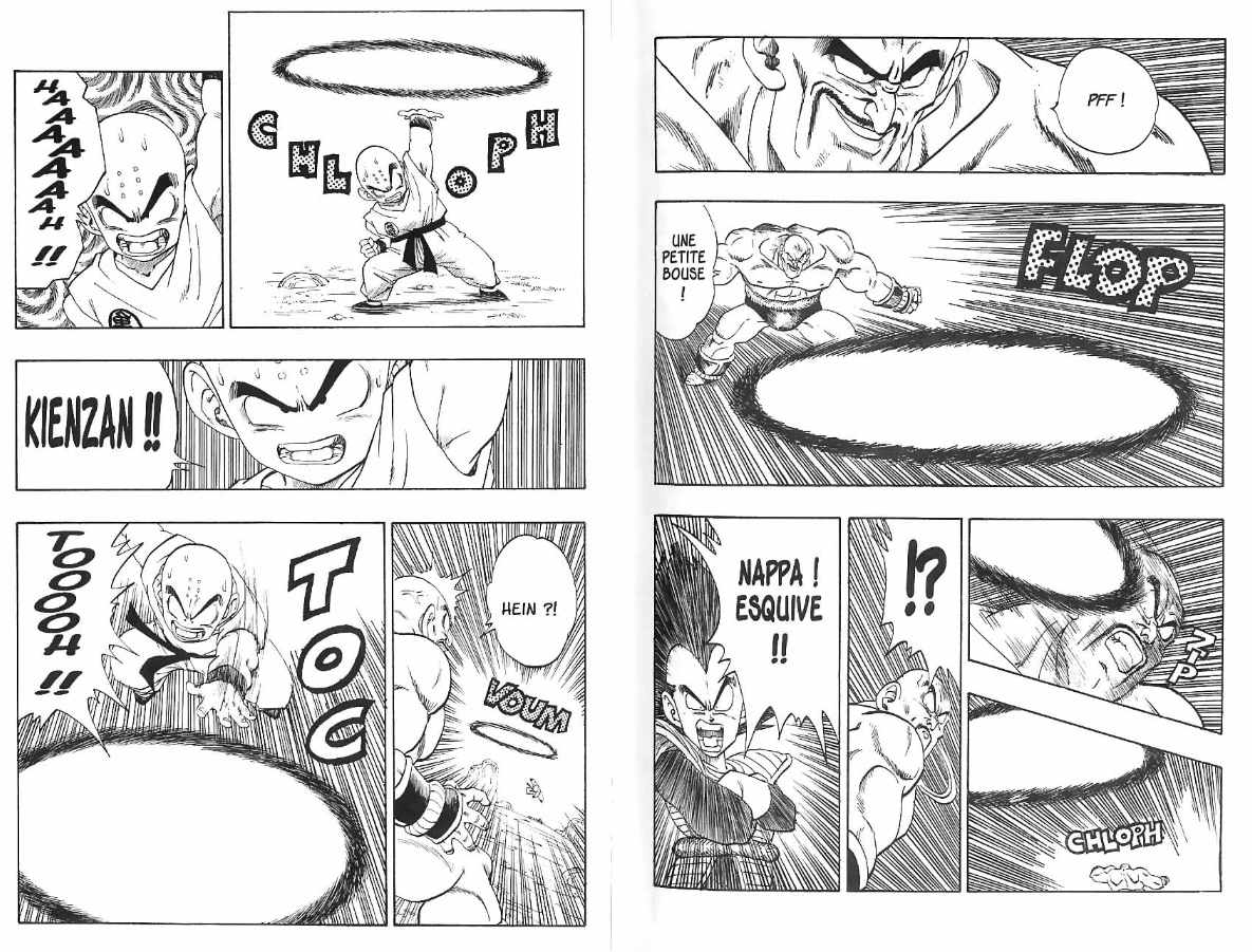 On voit bien la supériorité de Végéta qui est capable de dire que l'attaque de Krillin est dangereuse contrairement à Nappa qui pense que c'est une "petite bouse"