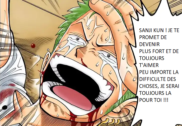 Sanji lui dit donc cette chose suivante, qui va tout droit toucher le coeur de notre sabreur préféré, qui changera leur relation à jamais