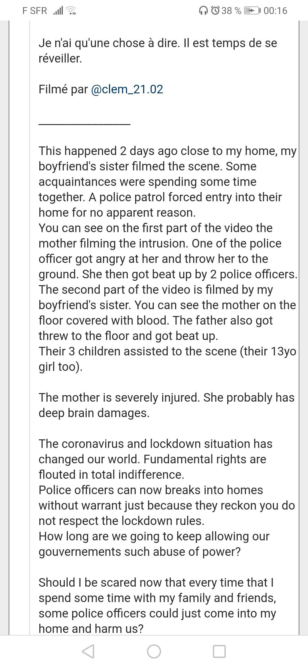 on rappel qu'à la base les flics sont venus pour un tapage nocturne et ça finit comme ça, les flics ont fait de la merdeSi la mère a essayer de se rebeller, c'est normal.