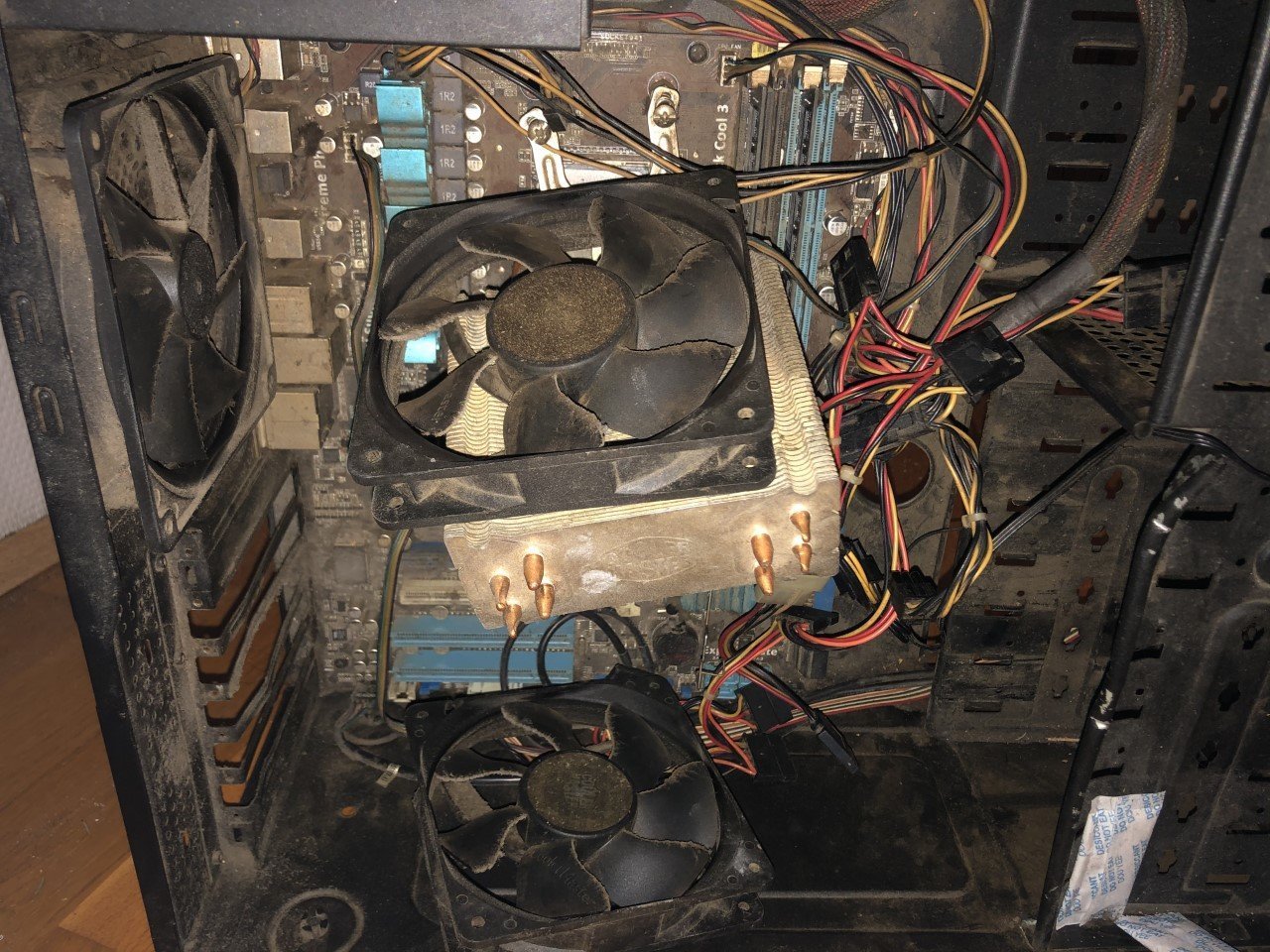 Oui il fonctionne toujours, je l'ai juste laissé prendre sa retraite. Et en le levant pour récupérer le GPU (il était couché depuis des années) le radiateur s'est effondré.