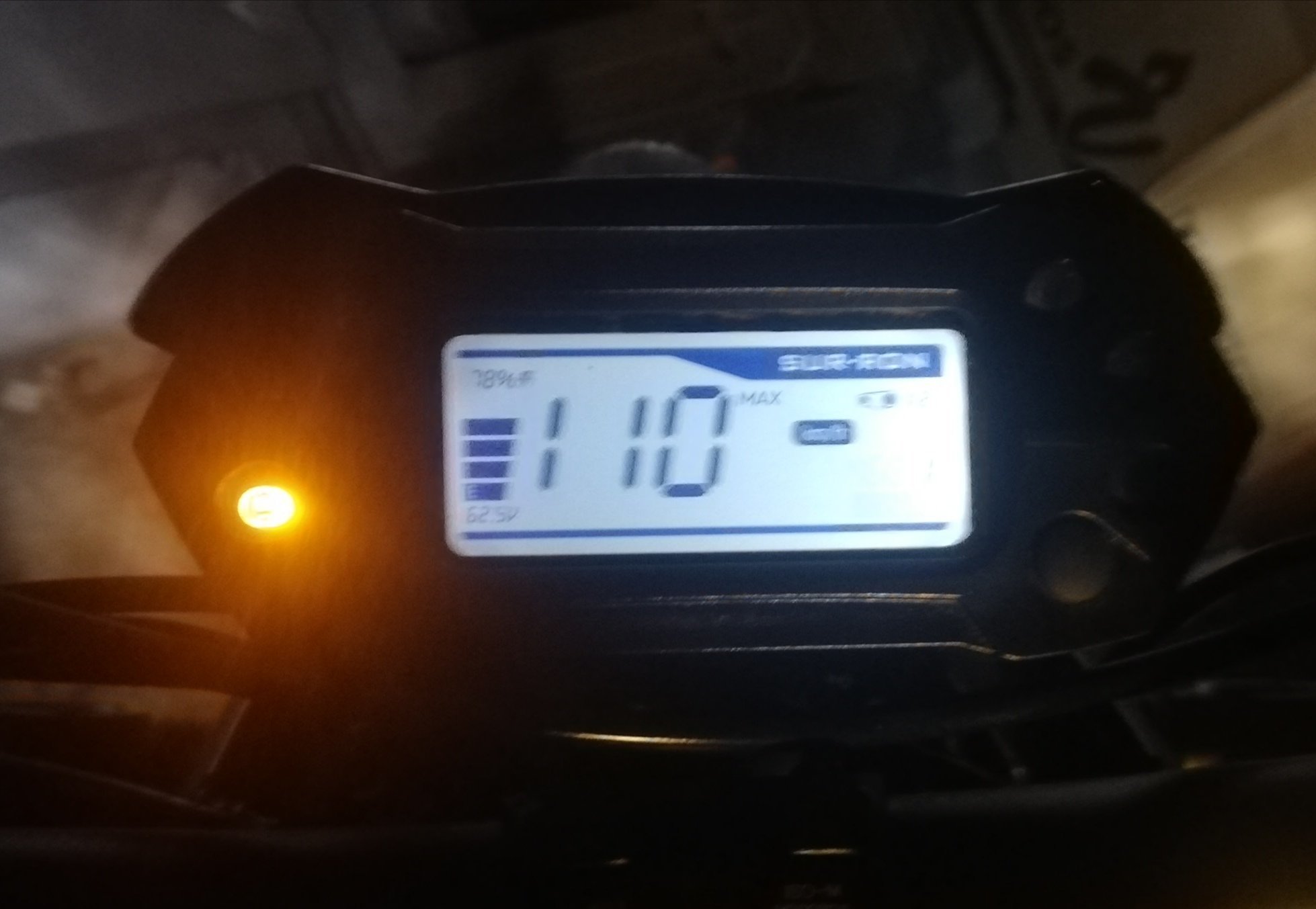 Je t'explique... Quand tu actionnes le bouton de gauche du tableau de bord ça t'affiche le Vmax que tu as atteint. Check :
