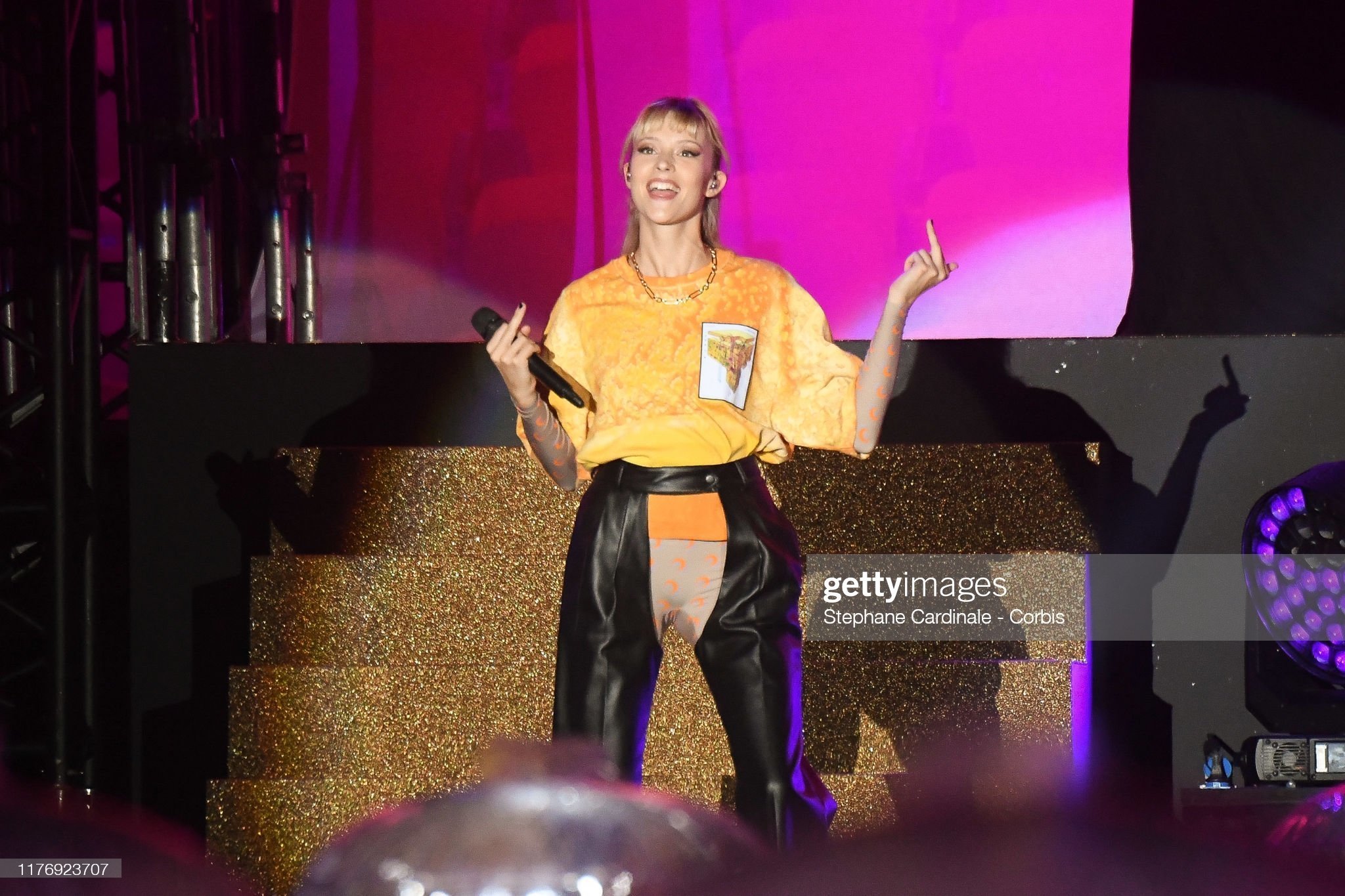 C'est pas un fake ?Ce pantalon de cuir ouvert à l’entrejambe porté par la chanteuse est appelé un « chaps » soit un « sur-pantalon». Angèle qui prend soin de porter des tenues de créateurs peu connus, a choisi pour cet événement de porter ce modèle revisité de Untitled. D’ailleurs, en dessous du pantalon, elle porte un collant de la créatrice Marine Serre. Cette dernière, avait présenté sa collection printemps-été 2020, la même journée.