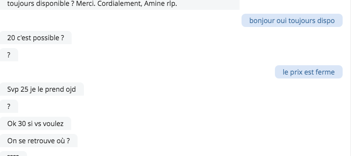 Alors que par message sur le bon coin je lui ai bien dit que c'est ferme il a negocié et en voyant que j'ai pas répondu il a dit ok