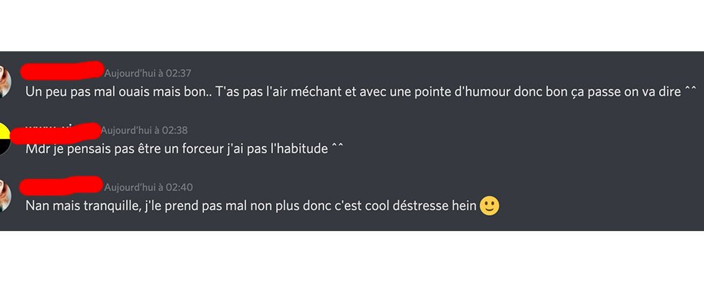 Ça ne sert à rien de faire le bonhomme sur Discord alors qu’il va bégayer IRL et lui demander lequel des trois trous est sa chatte