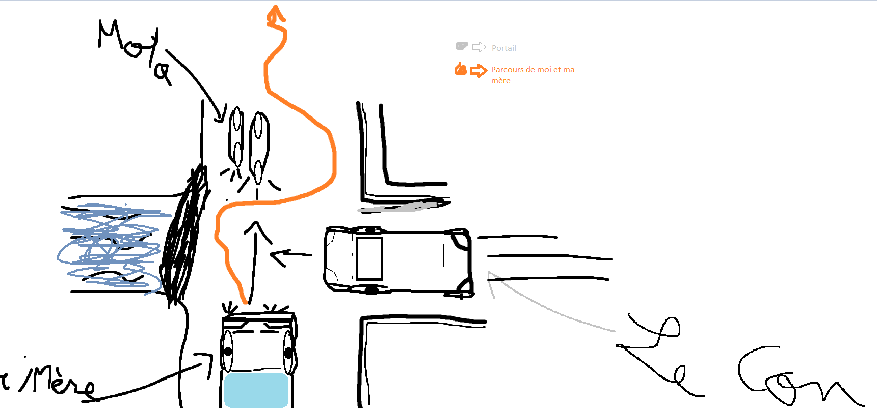 J'avais 10 ans , ma mère conduisait et me ramenait de l'école, et je vais vous faire un dessin :