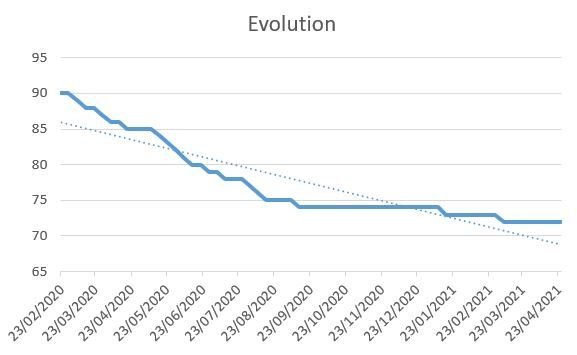 La pesée officielle a lieu tous les dimanches à 18h. C'est pour ça que l'évolution est assez linéaire. Je me pèse 1 ou 2 fois en semaine aussi pour voir s'il n'y a pas d'accrocs mais je ne le note pas