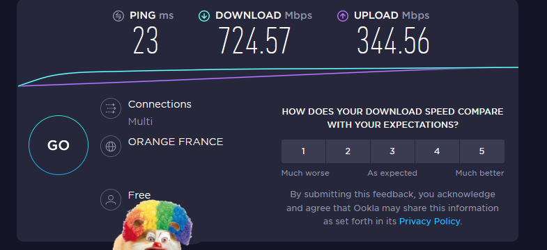 Je suis en ethernet et sur speedtest ça donne un résultat similaire
