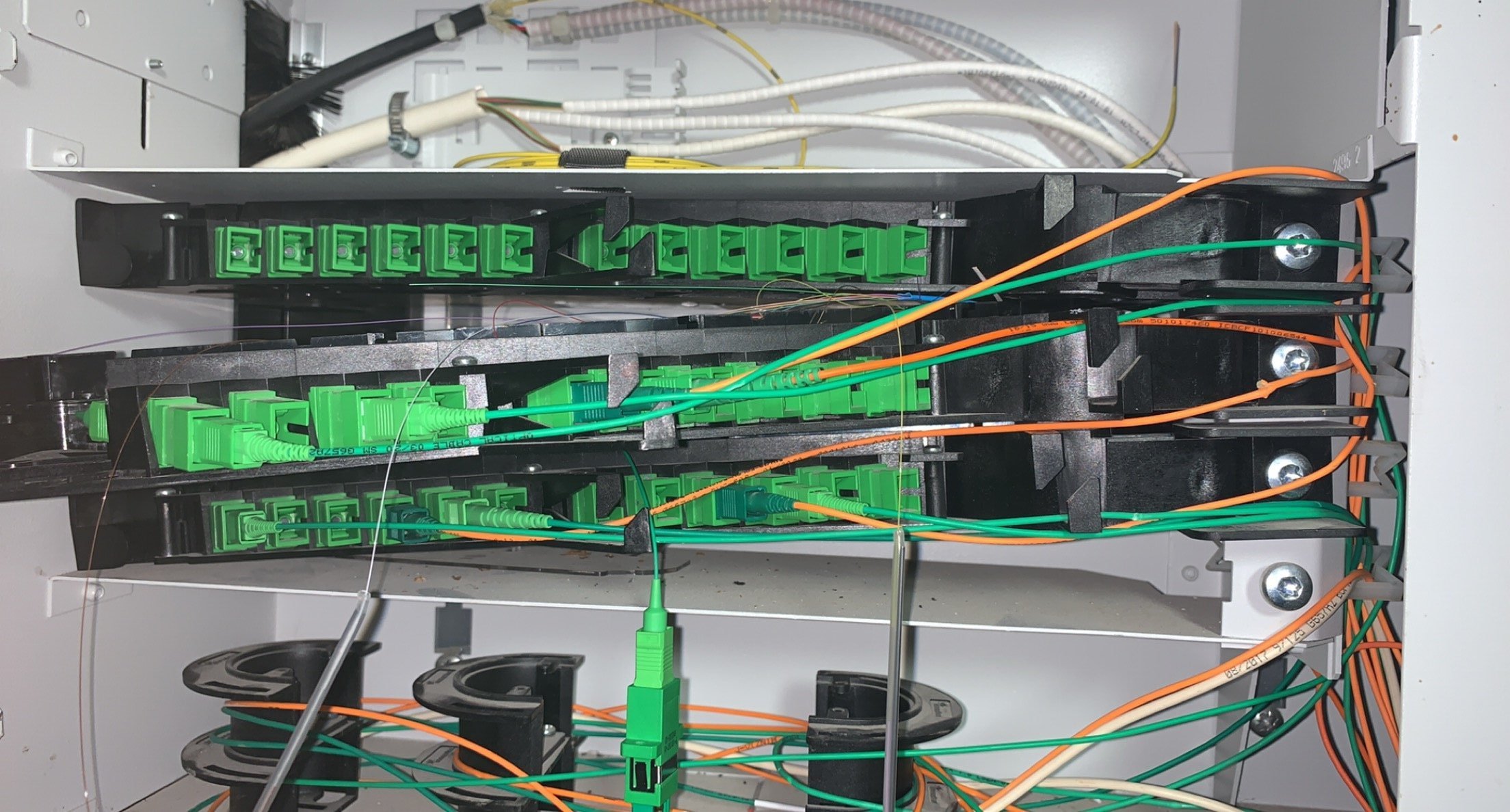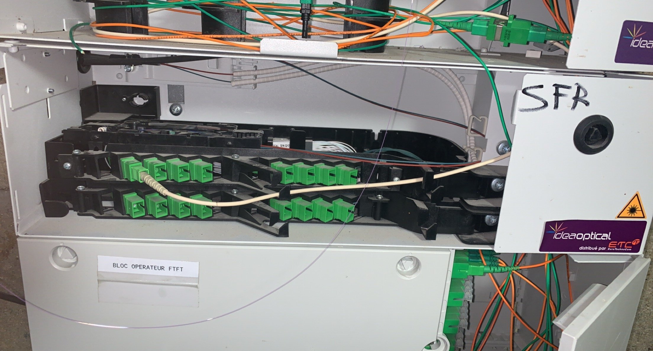 par contre je vois que le cable en bas à gauch a été sectionné, ya rien à faire si ce n'est attendre que les techniciens fibre réparent les carabistouilles des racailles de ton quartier