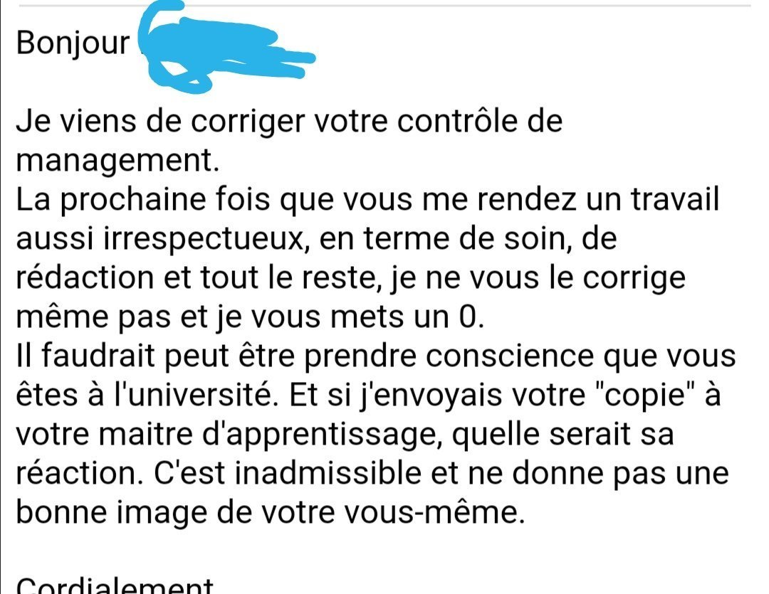 Évidemment qu'il a raison, mais dans les études, surtout en distanciel, tu juge le fond, pas la forme, tant que la compréhension peut se faire biensur