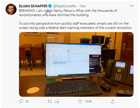 Le manifestant et journaliste Elijah Schaffer affirme être entré dans le bureau de Nancy Pelosi au Capitole