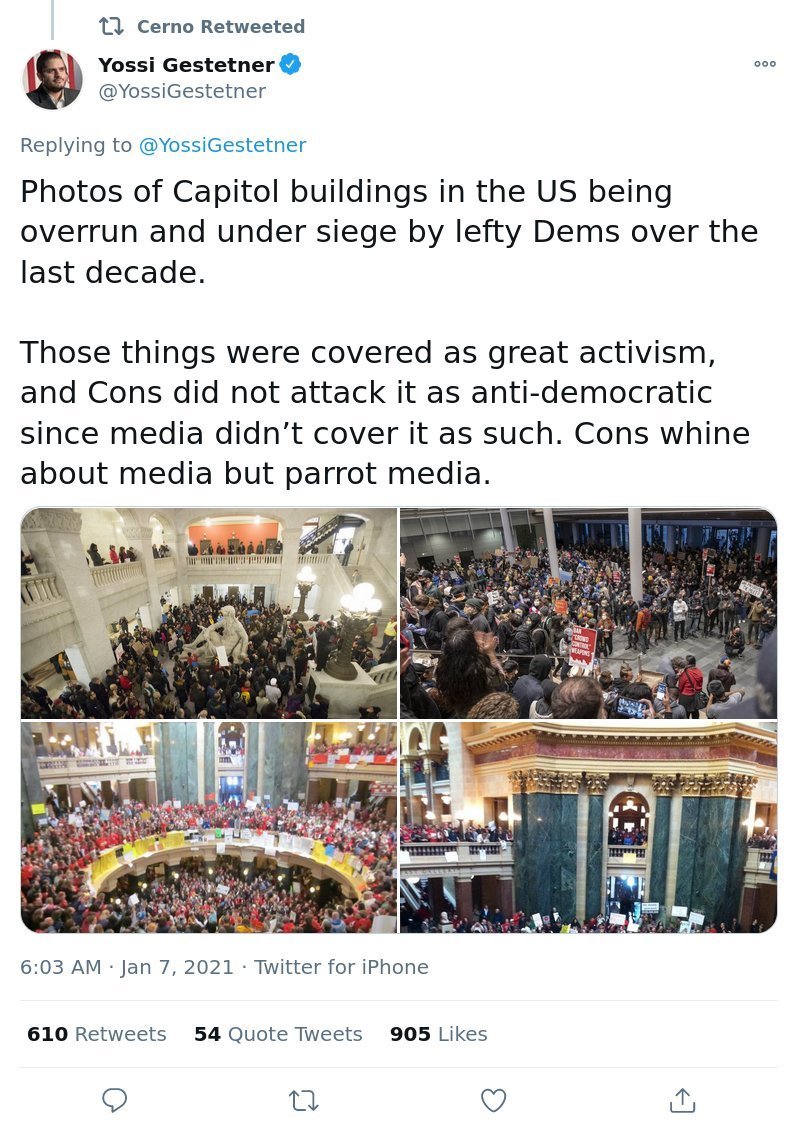 Le double-standard des gauchistes :https://twitter.com/YossiGestetner/status/1347046181357162496