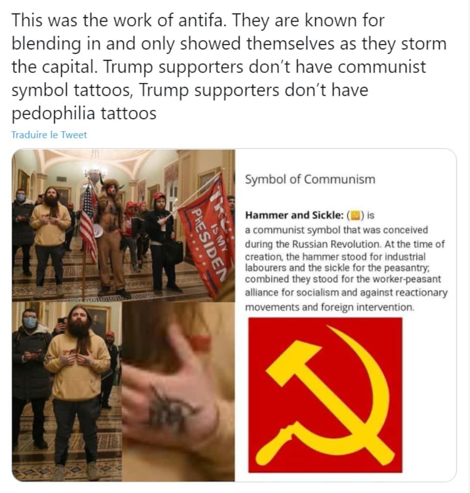 Ce qui est tragique c'est que j'ai l'impression que les manifestants n'étaient même pas mal intentionnés et ne se rendent pas compte du crime qu'ils commettent en entrant de force dans un lieu symbolique de la démocratie. Ils ont été plutôt paisibles et relativement pacifiques, par rapport à certains émeutiers en juin ou à certains Gilets jaunes. S'ils avaient voulu, ils auraient probablement pu faire plus de bordel.Bref c'est triste parce qu'ils semblent avoir été avant tout naïfs et galvanisés par un Président qui s'est lui même très vite rendu compte de sa faute (en témoignent les tweets). Et ce cirque a débouché sur des morts, va aboutir à plein d'arrestations pour rien, concernant des gens qui ont été visiblement manipulés.