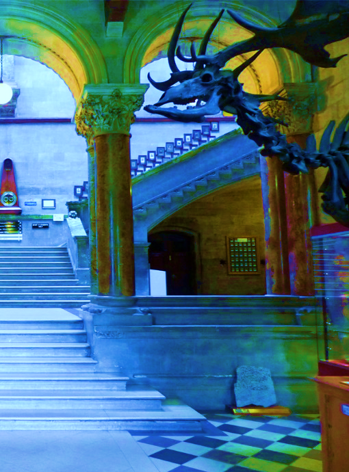 Hier j’ai rêvé que je prenais possession de ce lieu qui me hante. Tu sais, l’université. Redécorée à l’image de mon inconscient. Je m’y retrouvais seul, sans le tourbillon de vie qui emporte des pièces de mon âme à chaque fois qu’il me heurte, dans les couloirs. Cette fois je pouvais admirer le silence, et j’ai eu l’impression de visiter un sépulcre. Je ne savais pas vraiment ce que je cherchais. Les murs étaient hauts et je ne pouvais voir les toits. Tout à coup, pas loin de l’entrée sur la droite j’ai été frappé par l’apparition d’un gigantesque fossile animé. Il avait la dégaine d’un cerf préhistorique. Étonnamment je n’ai pas cédé à la première impulsion qui me saisit d’habitude en ce lieu, la peur, mais j’ai contemplé la bête avec une forme de tendresse hébétée. Elle avait l’air toute aussi perdue que moi dans ce bâtiment à la gloire des Lumières et de la raison pure. Nous étions juste deux êtres affectés par une dissonance fondamentale avec cet environnement bétonné, entretenu, rénové, peuplé et gorgé par les rires et les tressaillements d’une humanité prometteuse. Je n’ai pu que contempler cet être préhistorique dépouillé de sa chair et me plonger dans ses orbites creuses, et commencer à voir la réalité à travers mon rêve, à voir la vie sous l'angle de la mort.