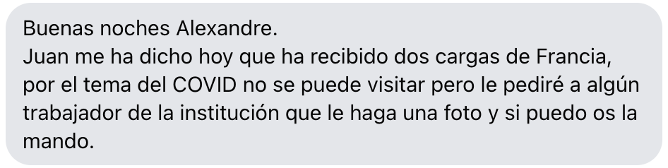 - Risitas a bien reçu vos lettres. Pour l'instant, à cause du COVID, les visites sont interdites mais il va demander à un membre du personnel de faire une photo (avec les lettres je suppose) et si c'est possible il m'enverra la photo