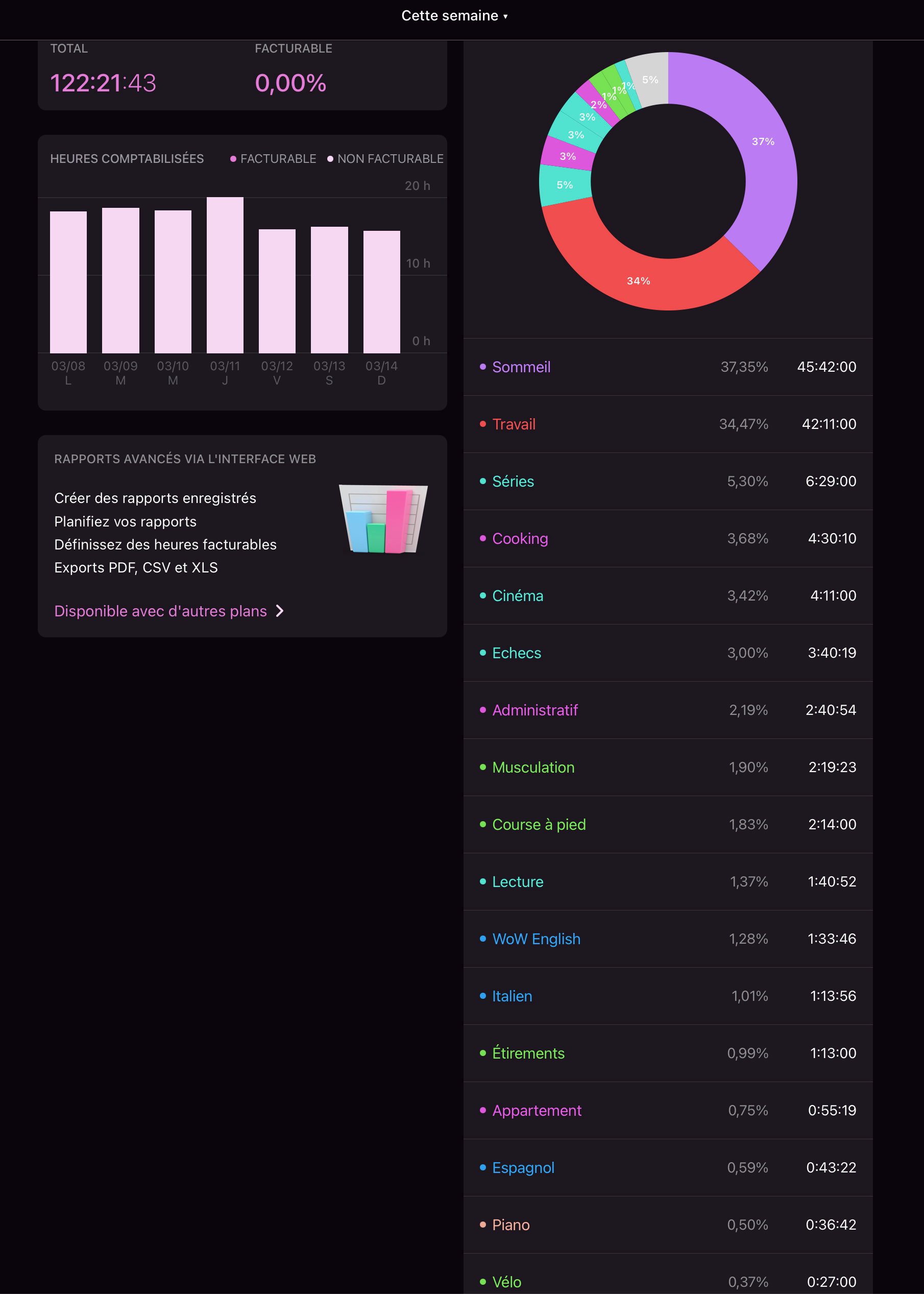 Un faible score mais j'ai réussis à maintenir un rythme de travail + beaucoup moins de procrastination sur JVC ou autre