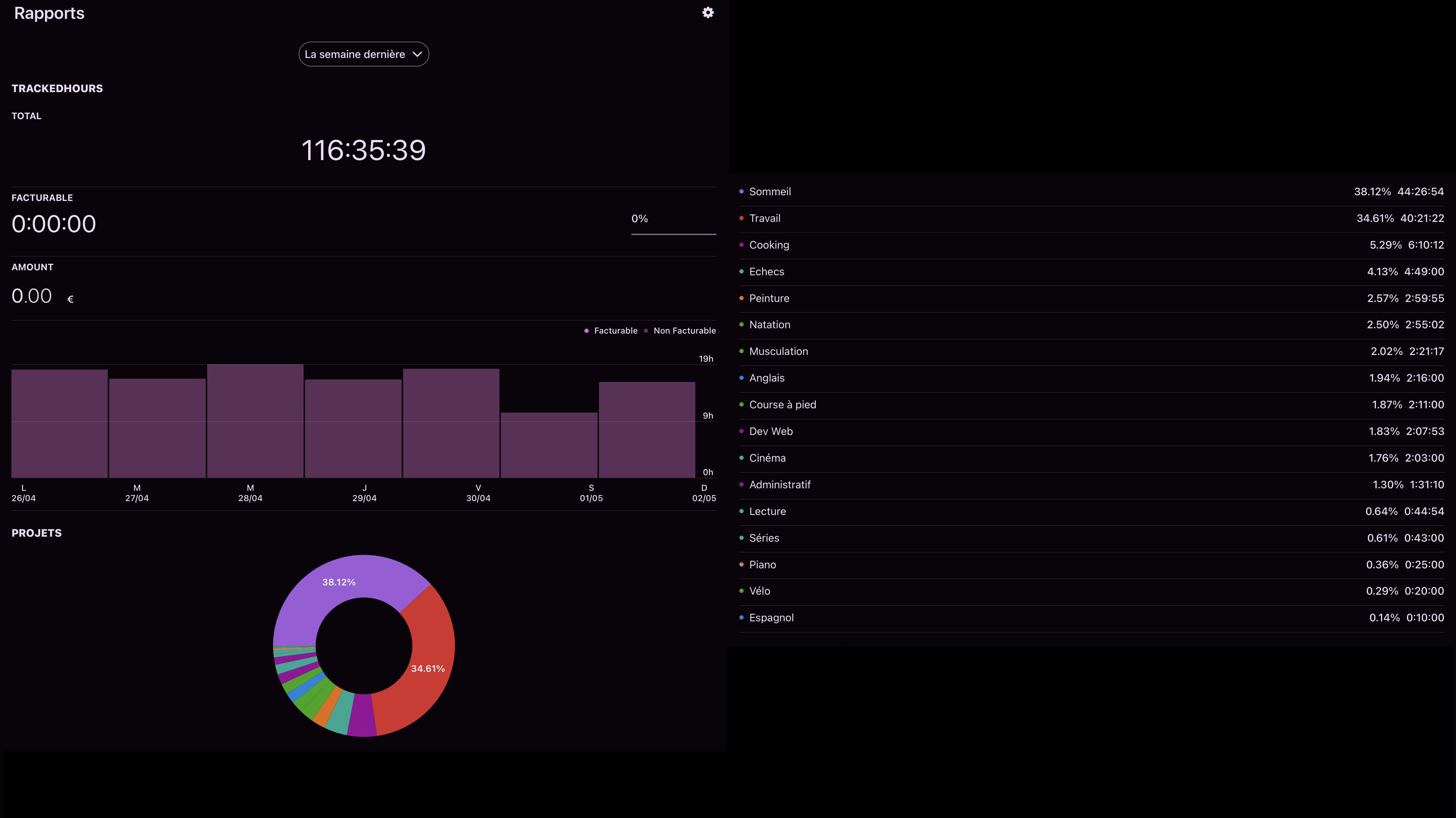 En théorie, ça aurait du être Dev web et Peinture/Dessin en rapport à mes projets, mais comme je me suis bougé les fesses tardivement... j'ai du taff pour que ça remonte.Cette semaine, c'est la bonne, je compte bien faire péter le record.