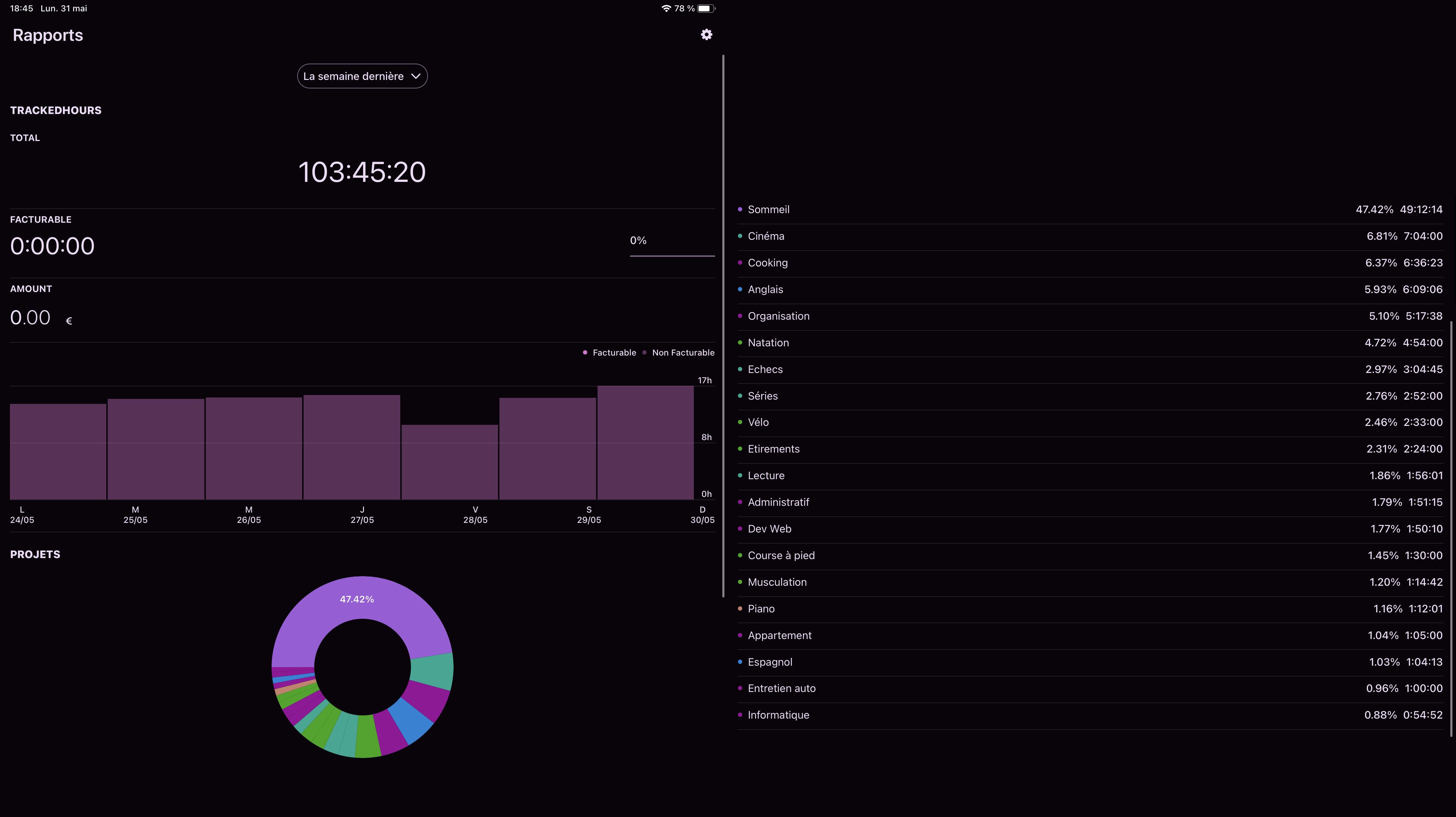 Sommeil: cap des 49h de sommeil franchi, une première depuis mes 13 ans et demi je pense.