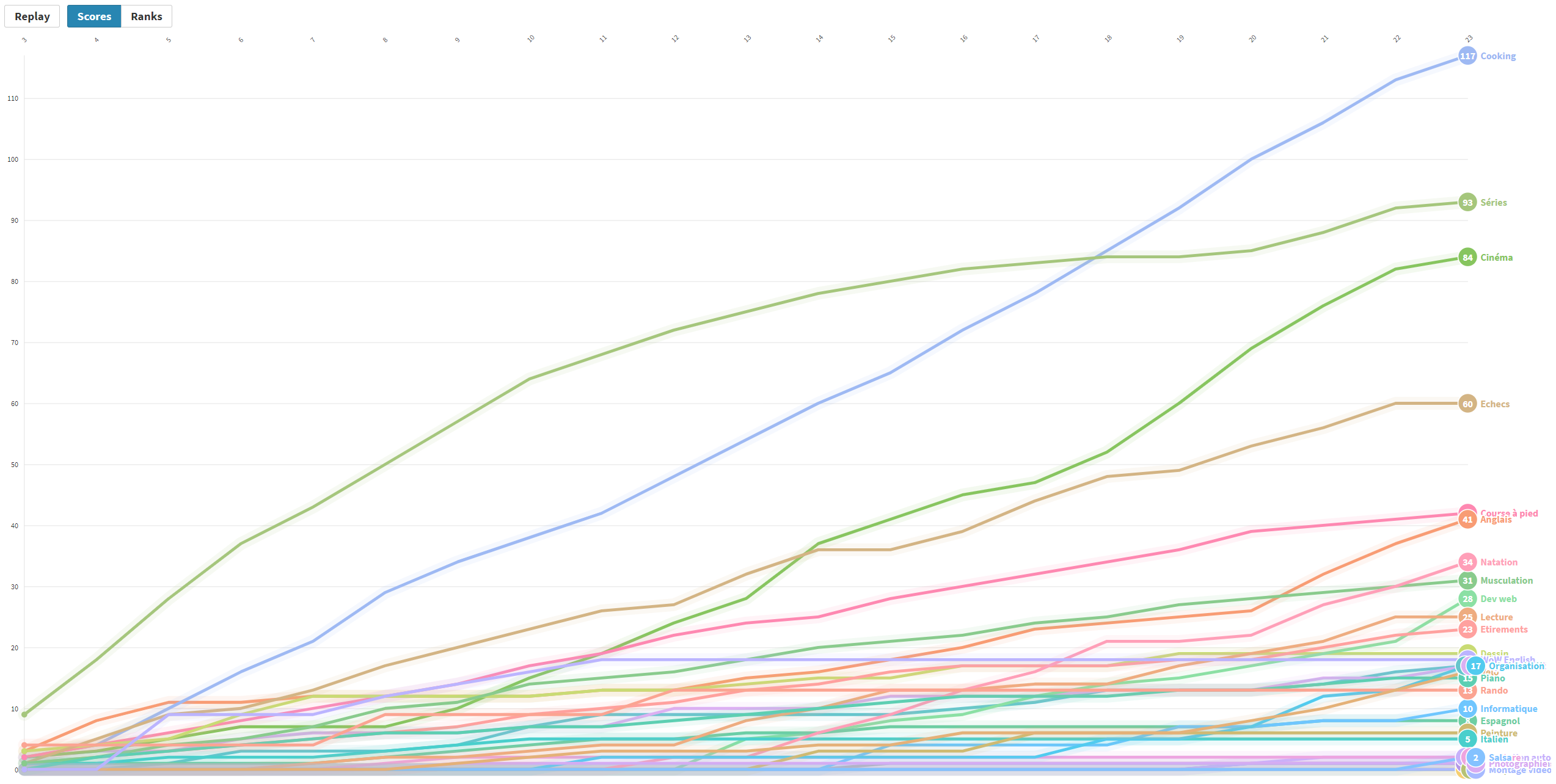Lien de l'anim: https://preview.flourish.studio/6473639/P2hUdMWhrXw24ArwKmk0-Z1gbvdzDt-w2U1P3tyZOcbNimEcLN7PY63rX00aurMl/Line chart race sans le travail & le sommeil, seulement les activités: