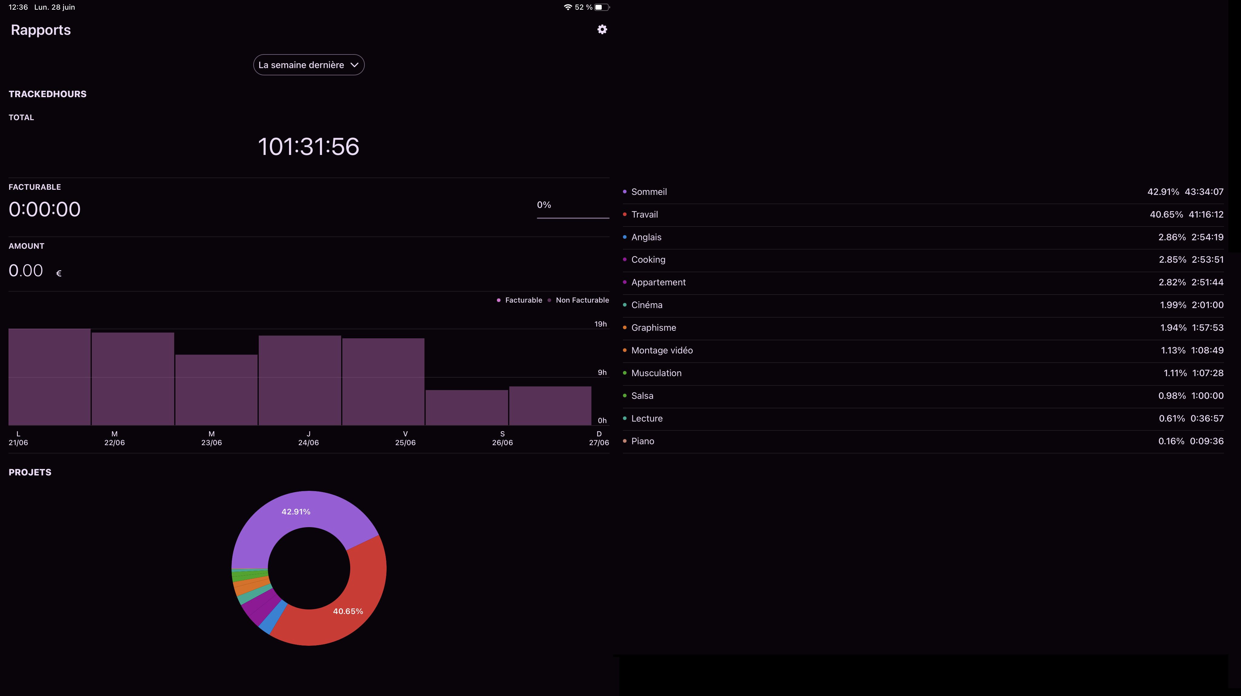 Je me remets encore une semaine de pause. Les cartons à déballer, le ménage à faire et tout le reste, en plus du stage, donc toujours pas de temps pour redéfinir mes conditions. Mais j'ai déjà une idée pour quand j'aurais du temps. Je me remettrais sûrement au piano, à Anki également pour apprendre différentes choses, notamment le Bescherelle et l'anglais et peut-être un peu de sport, au minimum, genre 15 minutes par ci par là pour commencer. J'attendrais d'avoir plus de temps et d'avoir rattrapé un peu de sommeil avant de me remettre à faire ça, histoire de définir plus précisément les conditions. Donc d'ici une semaine ou deux je pense. Et évidemment, je pointerais à nouveau le lundi quand j'accumulerais de nouveau des points.