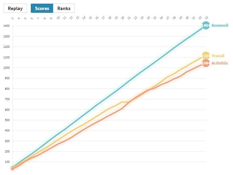 Line race (Sommeil vs Travail vs Activités):