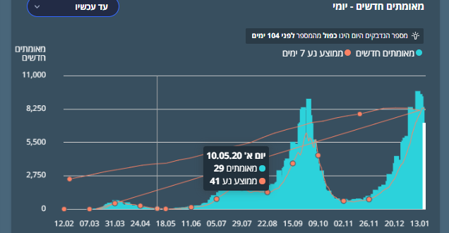 Concernant les chiffres du covid de manière générale en Israel ils sont très mauvais (confinement pas du tout respecte)