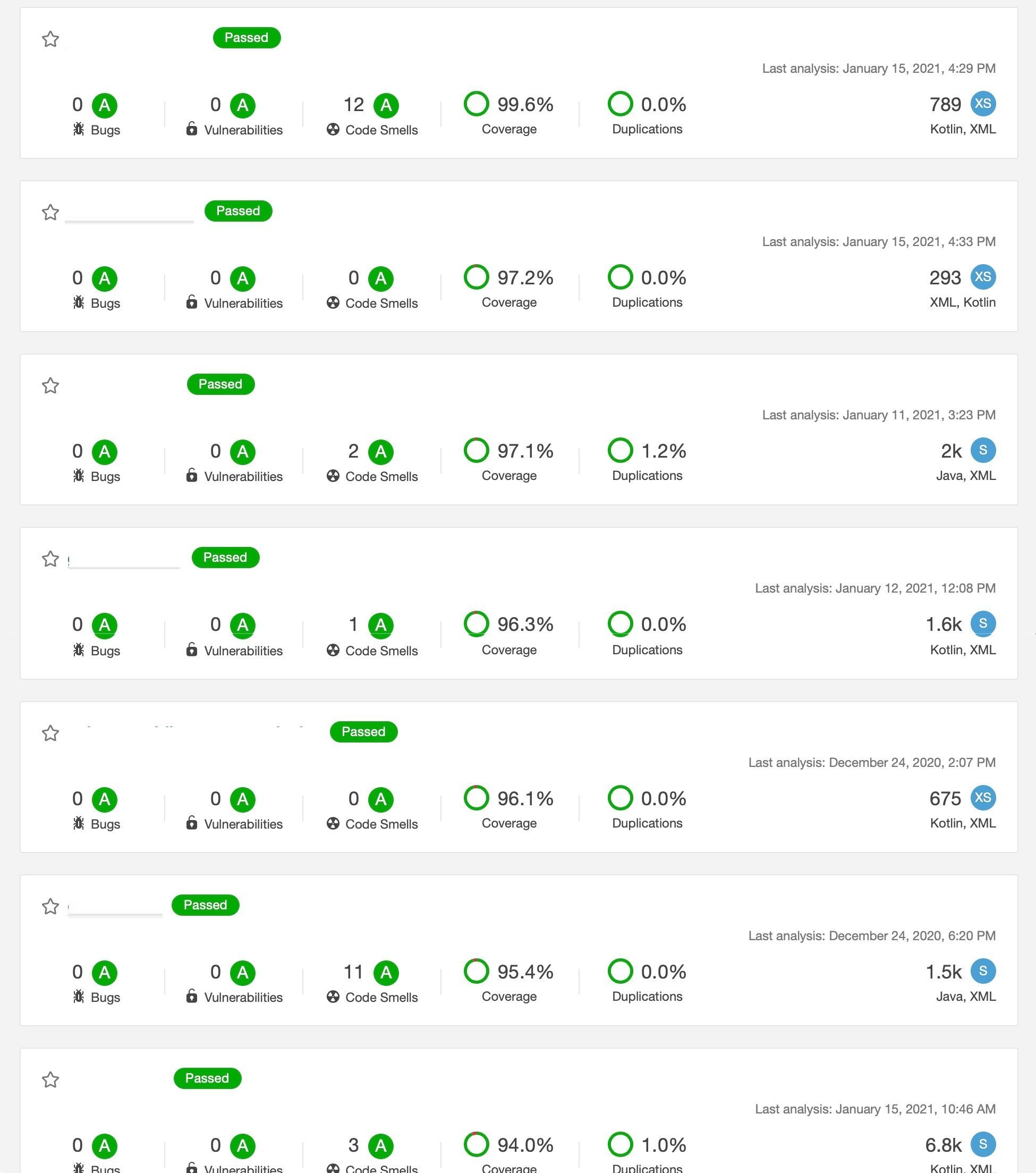 La plupart des "gros" projets (plus de 5-6k lignes) sont aussi autour des 85-90%, du coup la moindre régression est directement détectée par la CI.