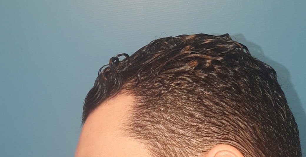J'ai mit une huile pour plaquer au maximum en arrière mes cheveux et prit les photos avec flash pour que ça se voit bien