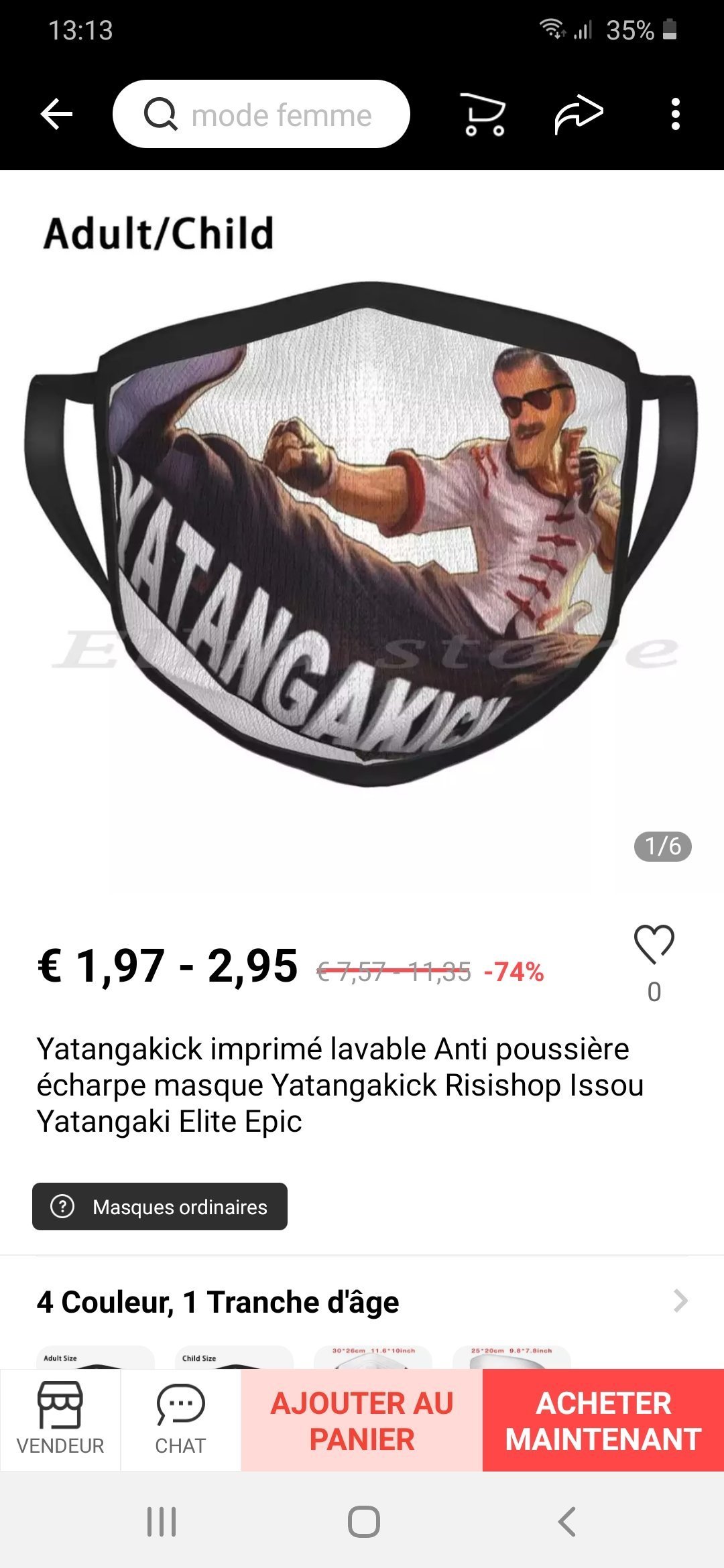 Le 23 janvier 2021 à 13:16:14 Sangokute a écrit : Le lien € 1,97 74%OFF | Yatangakick imprimé lavable Anti poussière écharpe masque Yatangakick Risishop Issou Yatangaki Elite Epic https://a.aliexpress.com/_BTKoGT