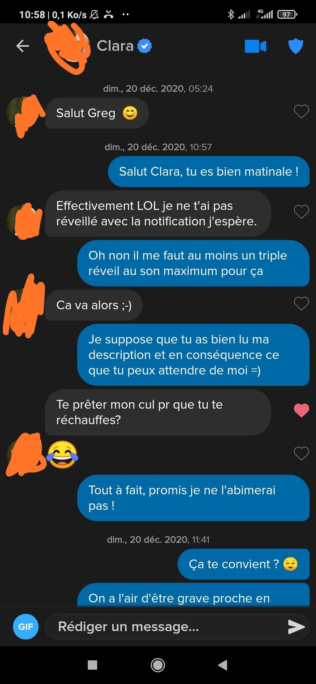 Hier avec un khey j’ai même fait le test d’envoyer « caca prout » a une 7/10 pour voir le résultat