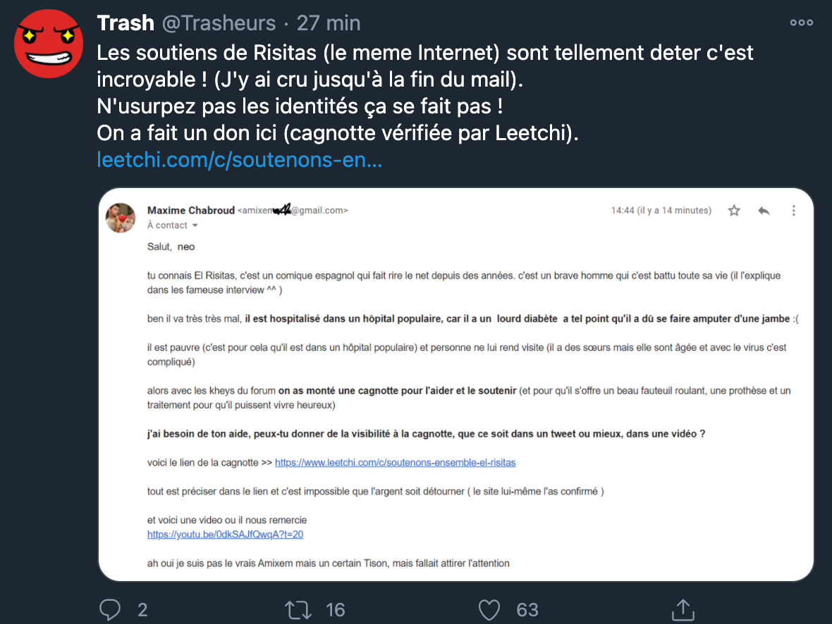 Pour les Kheys qui disent que la covid c'est que dalle :C'est pour les personnes comme RISITAS qu'on doit tous faire des efforts et respecter les gestes barrières, se faire vacciner des que ce sera possible etc...