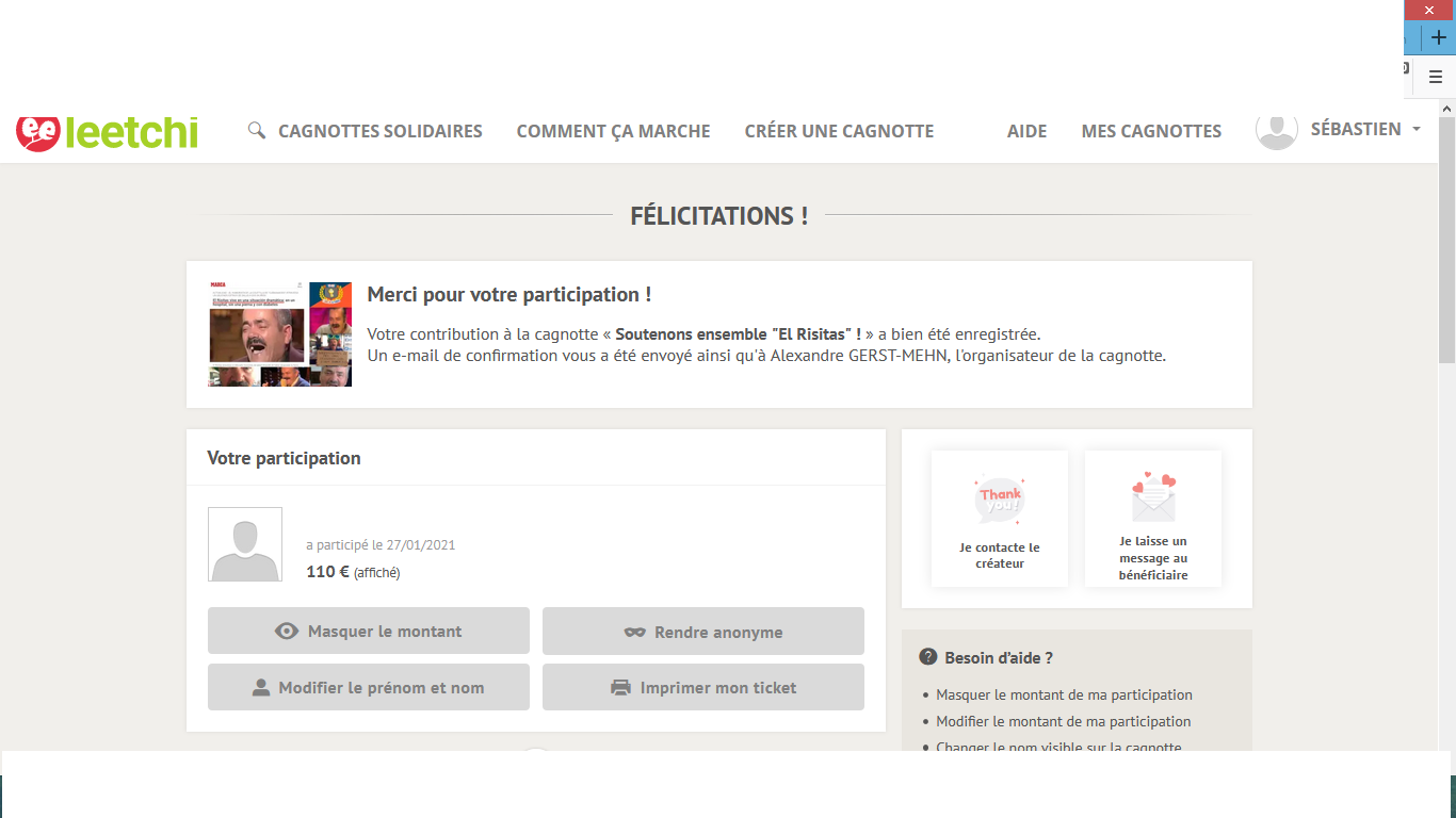 J'ai fait un don pour dépasser les 110e, je fais le screen.