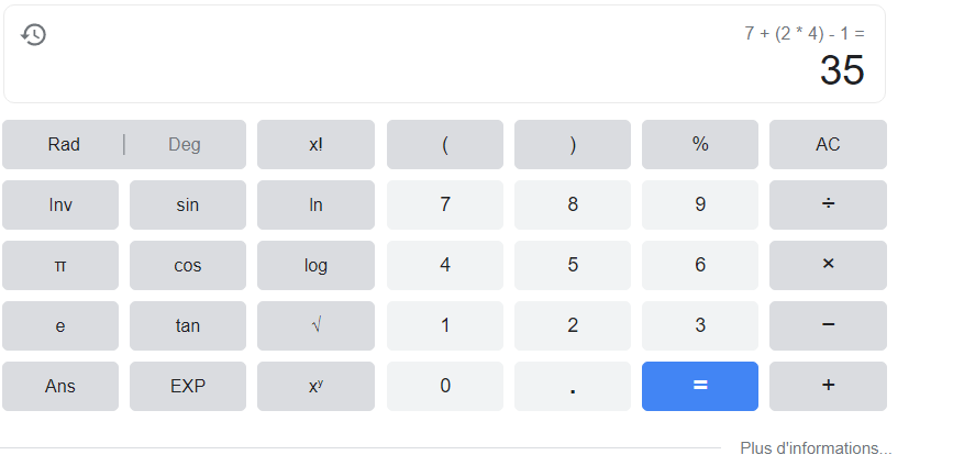 A mon avis tu as du modifier vu que c'est sur PCAprès, il y a un truc vrais dans cette affaire, c'est que la multiplication est prioritaire, programme aux collège