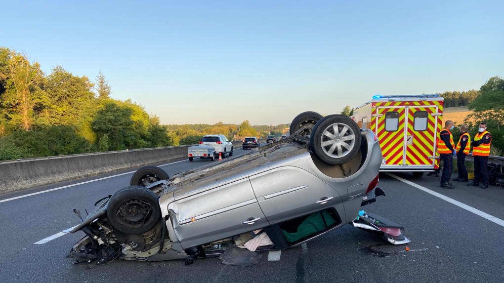 La voiture qui est projeté contre la barrière de sécurité + tonneau