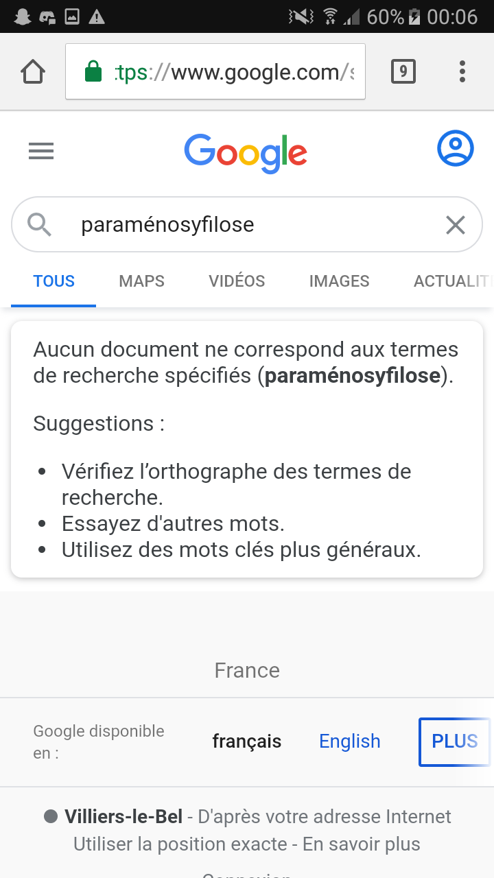 je suis atteint de paraménosyfilosebtg c'est une maladie rare donc normal pas sur google