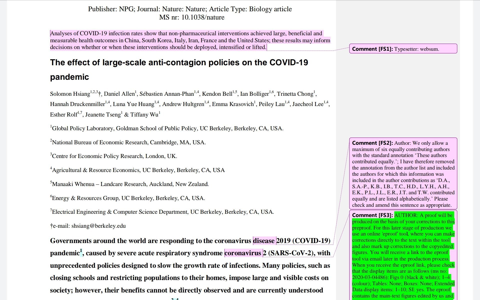 Plusieurs études sur l'efficacité du confinement : Berkeley, Pasteur, Imperial college.