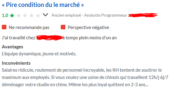 Cette même boite a d'ailleurs viré plusieurs devs il y a 3-4 ans et ceux-ci se sont retrouvés dans la mienne