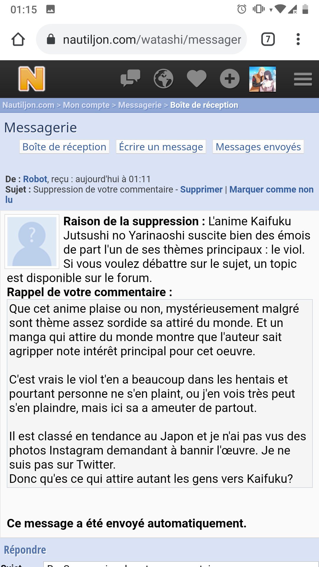 En France on est autant des sous merde a ce point pour ne pas avoir un site a nous spécialement sur les mangas l'actus Jap et j'en passe sans te faire skip pas un robot?Américain ou français, MAL dépasse nautiljon sur tous les points