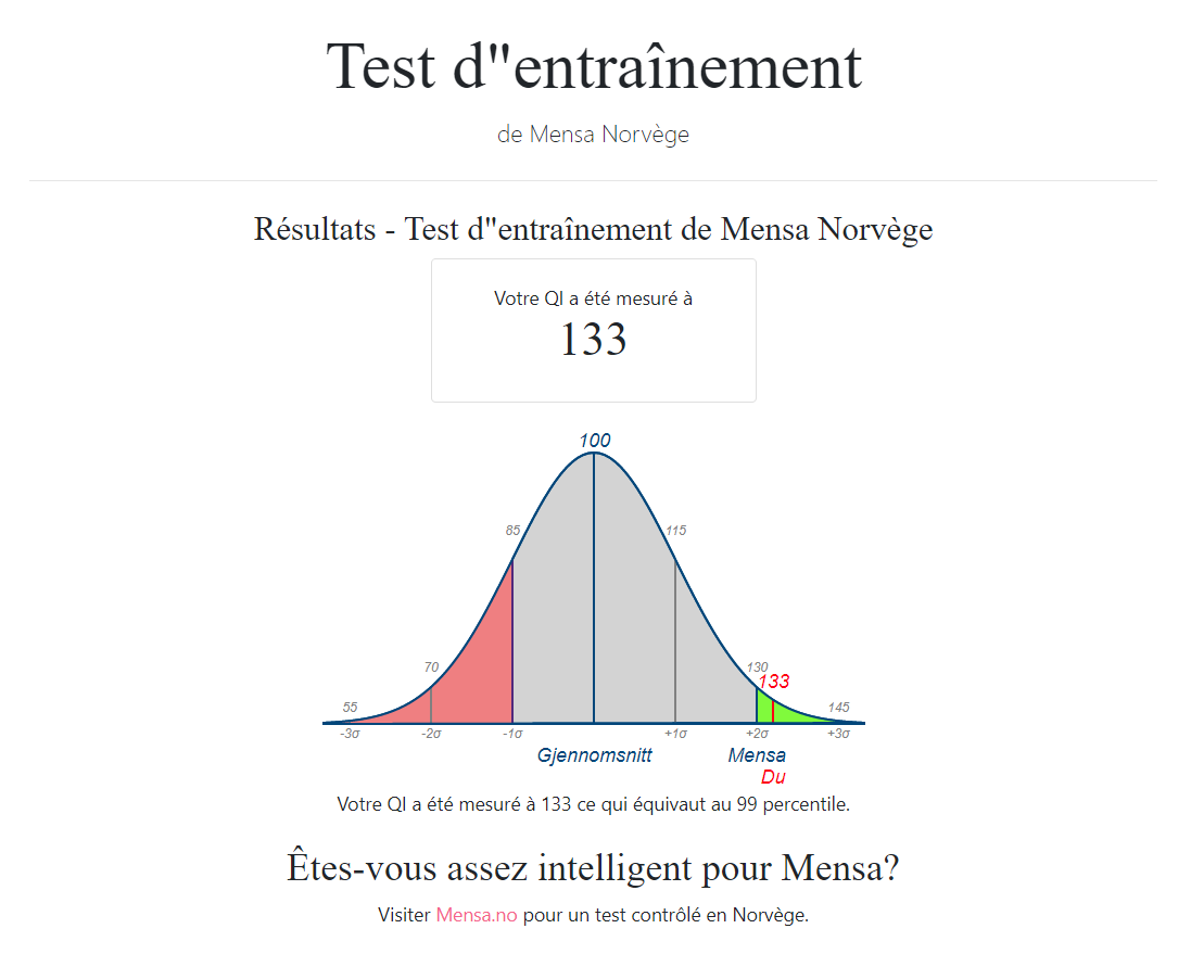 Ouais, j'ai fait le vrai test, tu as de la vitesse de traitement, du verbal etc. Ce n'est pas très représentatif.