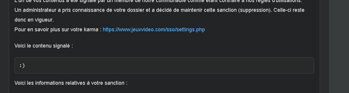 Le 04 février 2021 à 21:14:31 0futur0espoir a écrit :Le 04 février 2021 à 21:13:01 HommeSoja2 a écrit : heu ok les modos Oui, c'est tout à fait normal. Un message contenant un unique smiley est considéré comme inopportun. Tu es en tort et tu te la ramènes.